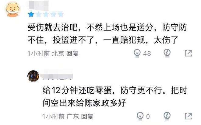 由于此前杜锋在接受采访时透露本赛季杜润旺带伤作战,联赛开始前就建议他做手术,但杜润旺还是选择坚持,对于他近期在场上连续低迷的表现,球迷很不买账:“受伤就去治吧,不然上场也是送分,防不进投不进,一直赔犯规,太伤了”、“12分钟一个板,还有零蛋旺仔。”